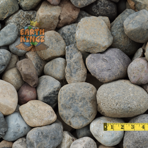 Smooth, multi-colored natural stones, typically ½”–1” in size. Excellent for drainage around foundations, French drains, and dry creek beds. Also used decoratively in landscapes due to their varied tones and rounded edges.