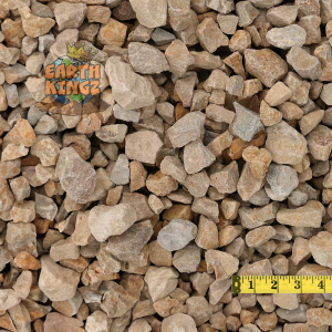 Light tan to beige angular stone, typically ¾” or larger. Used for decorative landscaping, pathways, and drainage. Offers a clean, warm-toned look with good durability. Does not compact, so it’s best for visual appeal and erosion control.