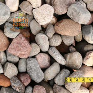 Smooth, naturally rounded stones in mixed earth tones—browns, reds, grays, and blacks. Great for decorative beds, around ponds, edging, or as mulch alternatives. Excellent drainage and striking color variety make it a landscape favorite.