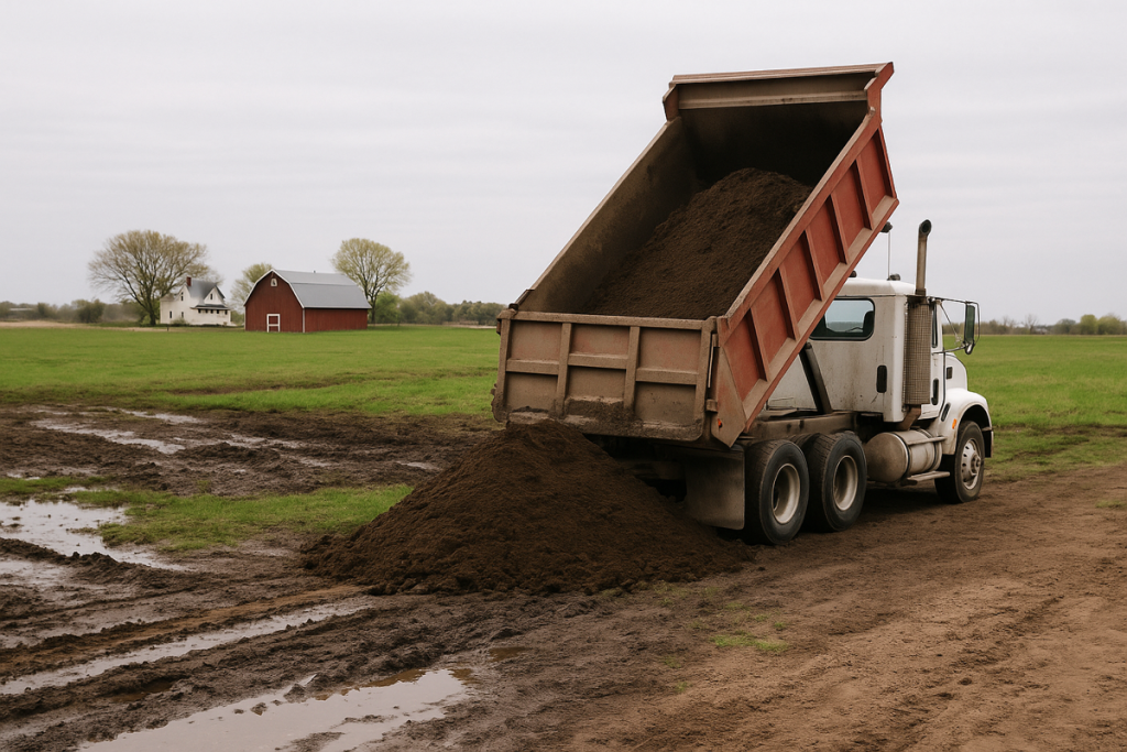 The farmer gets high-volume fill delivered for a fraction of the cost of hiring a dirt crew.